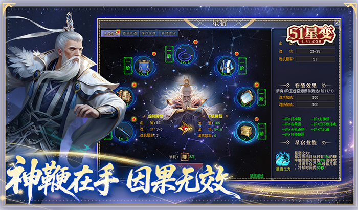 《51星变》封神星宿系统——魂系战力革新。开服300天且将魂100级解锁,通过「宝物-封神星宿」入口开启。