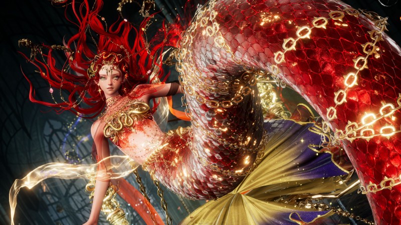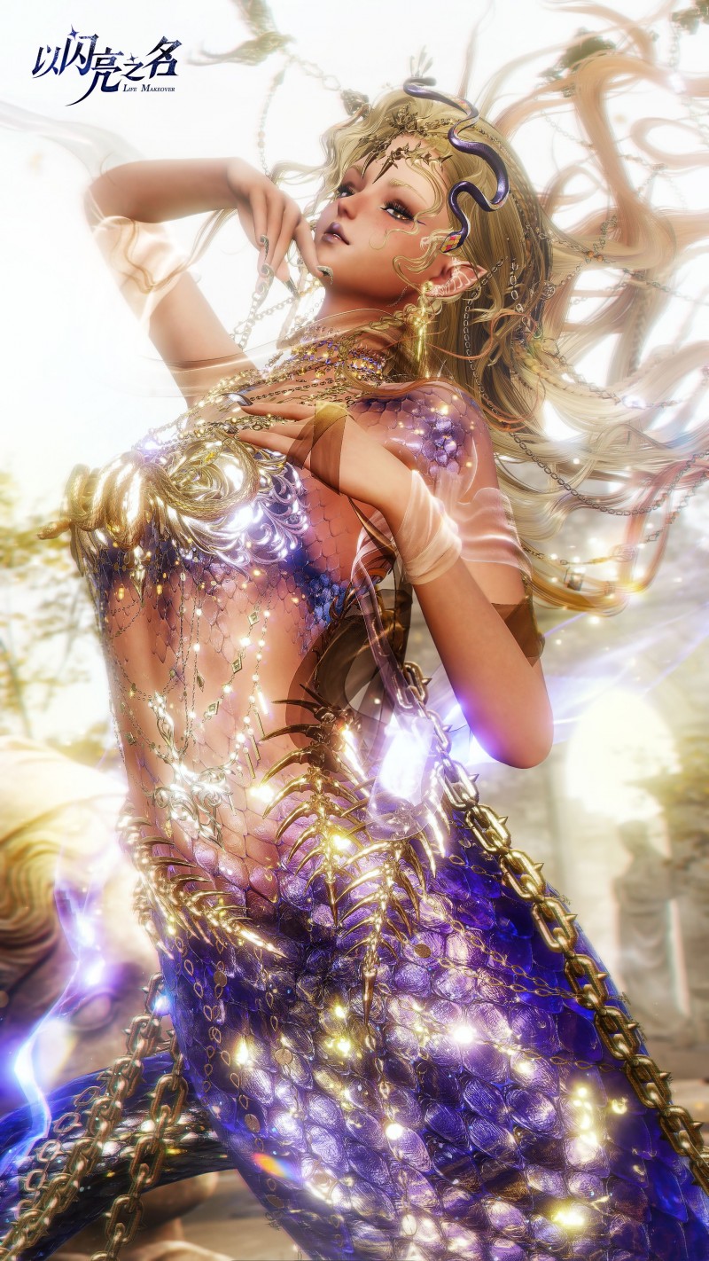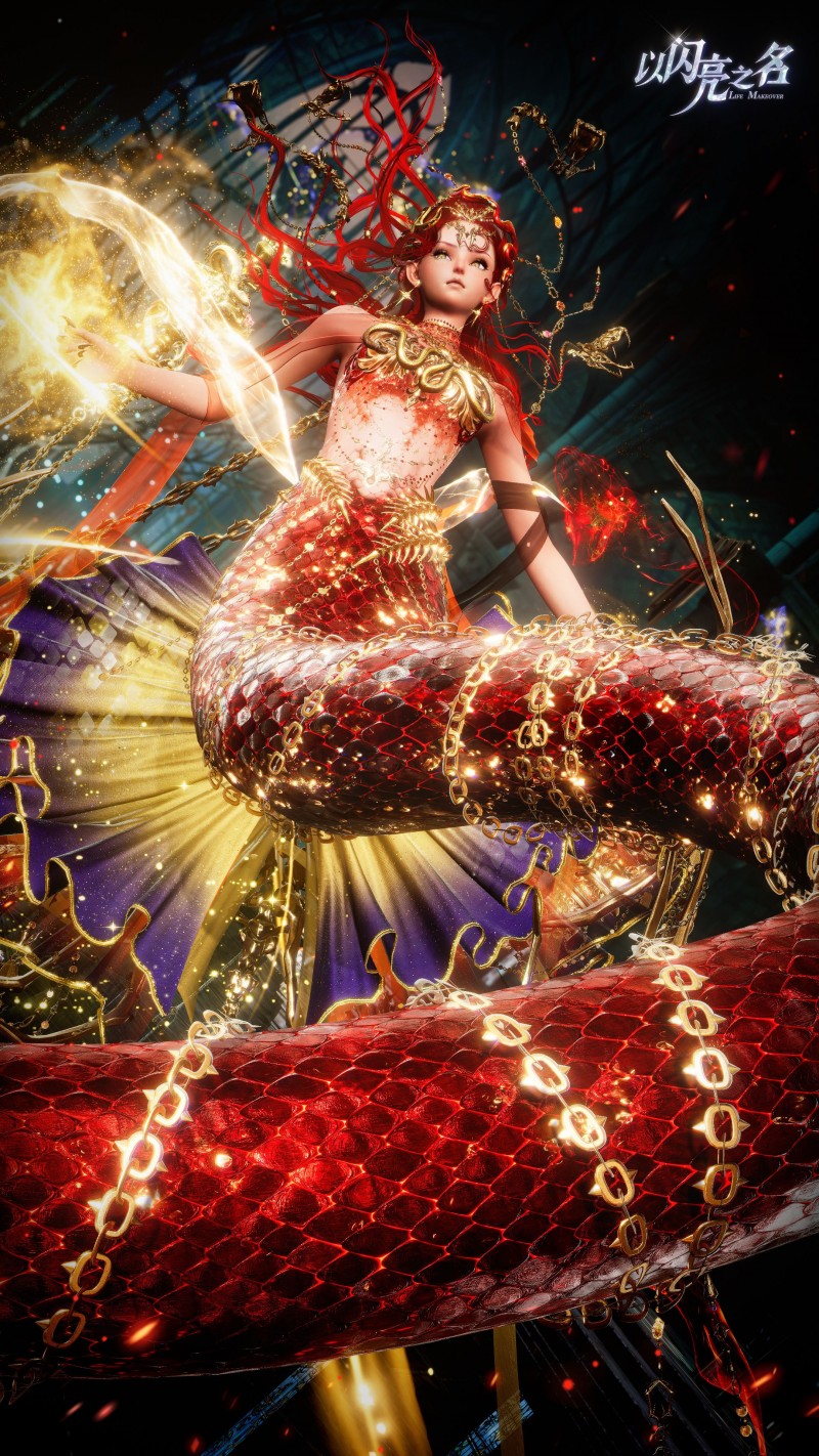 为了还原蛇鳞的真实质感,《以闪亮之名》以真实蛇类鳞片为参考,对每一片鳞甲进行高精度独立建模,其纹理、厚度、排列方式都深度贴合真实生物的生长规律,鳞片边缘采用渐薄处理,使鳞甲与皮肤过渡更加自然,看上去仿佛是从肌理之中生长出来,没有丝毫生硬感。当角色行动时,鳞片会随着身体曲线产生细微起伏,通过多层动态驱动系统,让整片鳞甲呈现出仿佛拥有生命般的流动感,每一片鳞片的摆动都自然流畅,如同真正的古蛇在缓缓蠕动。
