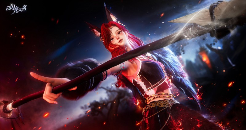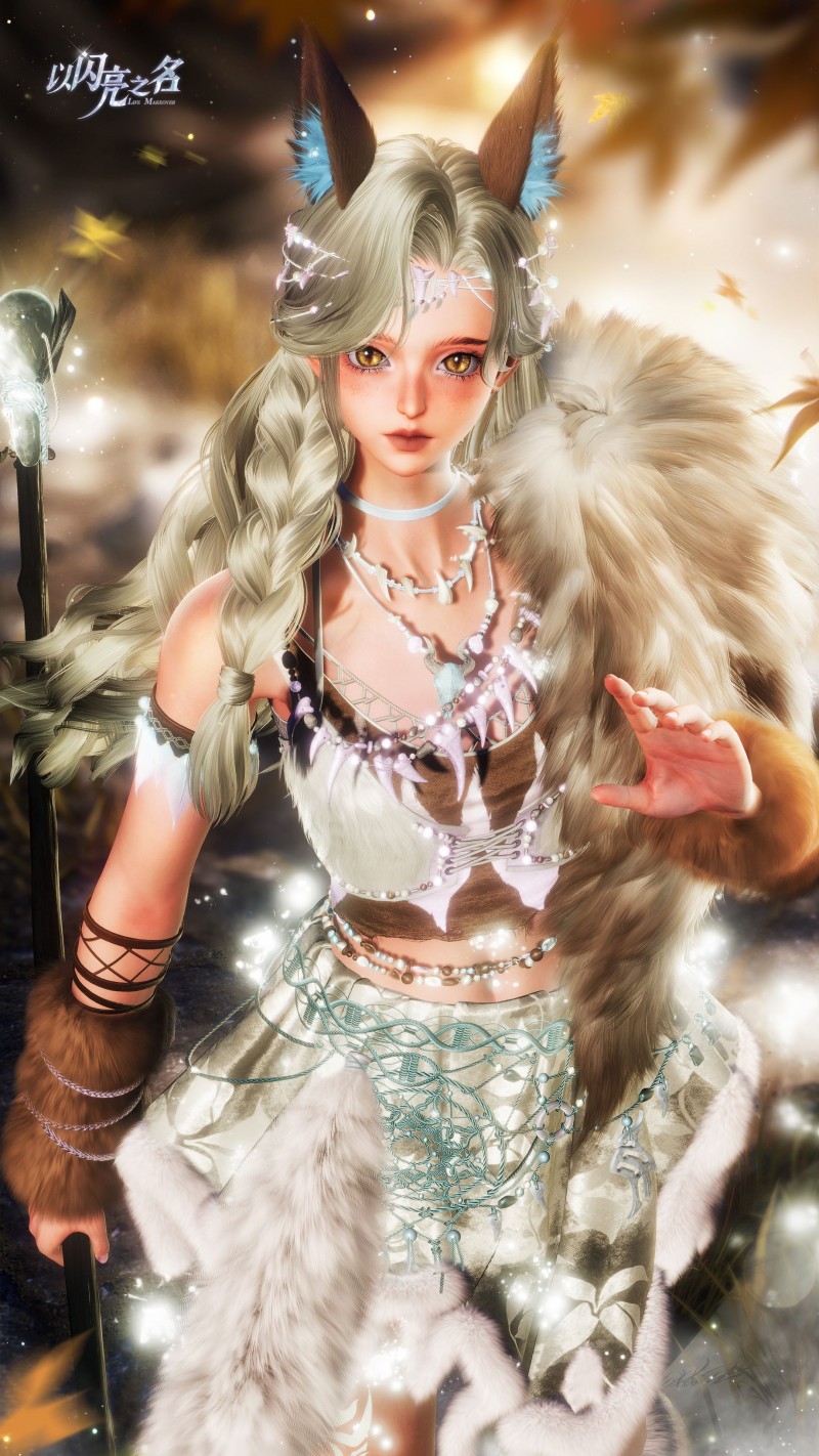 围绕武器与服饰所设计的火焰动态特效,则进一步强化了这种原始而旺盛的生命力,火焰会沿着武器与服装边缘缓缓跃动,光影在皮毛与骨饰之间流转,颜色从炽热的橘红渐变到温暖的金黄,搭配细微的火星与金粉拖尾,让整套造型在静止与移动之间都保持鲜明的能量感,那并不是毁灭的火焰,更像是荒原夜色中被点燃的狩猎篝火,在风雪与黑夜之间,为猎者照亮前行的道路,也彰显着远古猎者的坚韧与勇敢。