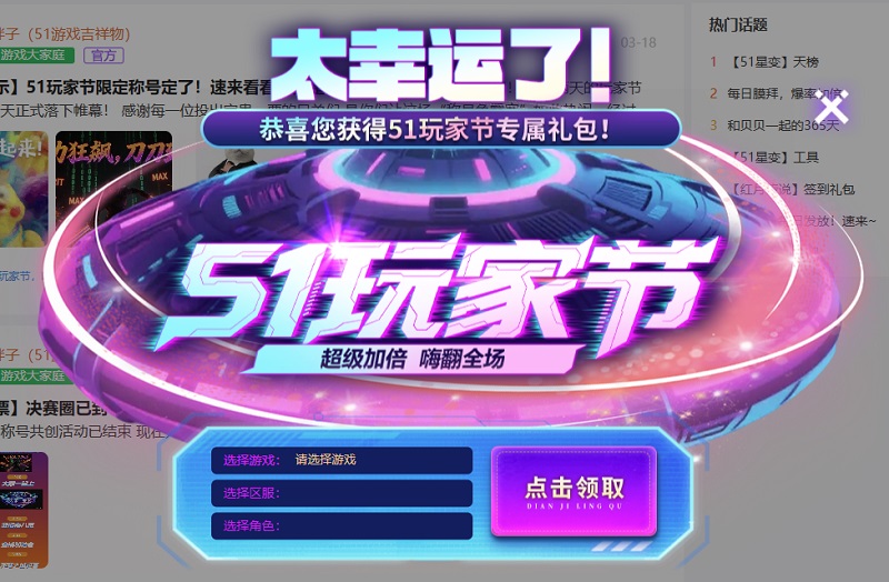 从今日起至5月10日,51星变“礼包雨”正式上线啦!!!!每日参与玩家社区玩家节互动,最高10000钻石的惊喜福利等你来拿~每日100%有奖!