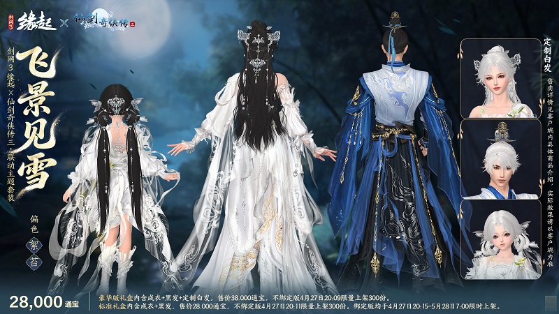「故梦长萦」同款定制白发同步上架,发丝莹润顺滑,贴合各体型打造专属发式,搭配同系列精致饰件,与外装风骨完美契合。成男款凌厉孤高,成女款清逸温婉,萝莉款娇俏灵动,两款偏色对应角色神韵,可单独选购。