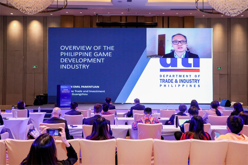 菲律宾驻广州总领事馆商务领事福安来先生通过视频连线的方式对菲律宾游戏产业进行了全方位的介绍。他表示:菲律宾一直是全球创意产业的贡献者,从视觉艺术、电影时装、广告设计、家具设计、数字动画到游戏开发,在菲律宾都有一个完整的产品链。菲律宾游戏开发行业90%收入来自于外包工作而不是自主研发。菲律宾市场广大,年轻群体对于游戏非常感兴趣。国外的游戏工作室没有精力执行游戏过程当中所有必要的步骤,因此会选择将制造阶段外包给其他规模较小的公司。游戏外包大致分为以下9类,包括游戏知识,游戏艺术,资产开发,动作捕捉清理,游戏动画、游戏编程、全方位游戏开发,还有游戏化质量保证和游戏测试。未来菲律宾会创造更多独特并且优质的内容,分享给全球。