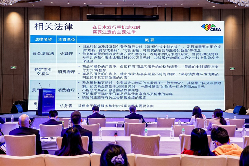 日本计算机娱乐供应商协会的常务理事山地康之先生通过视频连线的方式就日本发行手游要注意的相关法律事项对现场的嘉宾进行了分享。首先是资金结算法,在游戏当中发行货币进行付费充值的这些行为,也就是说要使用预付支付方式,使用这种方式,发行商需要向用户提供姓名、商号或者名称,以及可用余额,可购买的物品以及服务数量等信息。